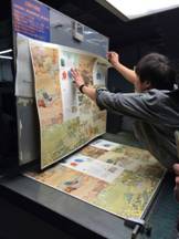 咦,这些并不“漂亮”的版子是什么呀?可别小看它们,多亏有它们,美编电脑里的文件才能变成一本本“活生生”的书。它们就是对印刷机发号施令的CTP版,印刷机会以它为准,进行印刷。