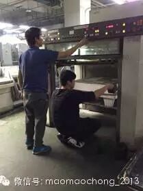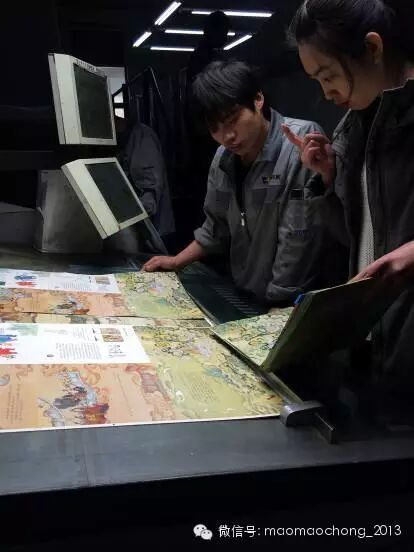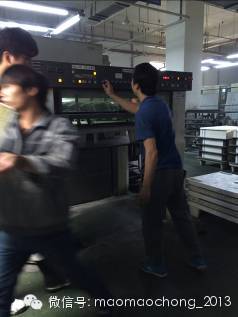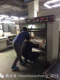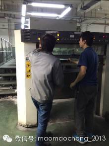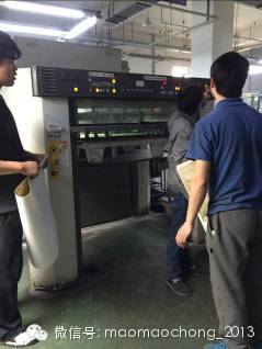 下面介绍一下我们印刷之旅的男一和男二,分别是机长和副机长,下图是他俩正从高速运转的印刷机里拿取印刷出来的内文,然后会放到调色操作台上,和我们的女主美编大美女一同校对颜色。(在这里提醒小盆友和小伙伴们,哥哥们有练过,千万不要模仿哟。)