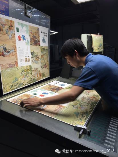 为了保证书的湿度和无尘,厂区不间断地开着喷雾,保洁阿姨也隔一阵子就来拖一次地。因为要连续站立12小时,调色台前都铺有软垫,以保护机长不得静脉曲张。(我踩了踩确实很软,但不知道站12小时还是否能觉得软。)