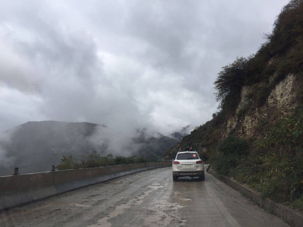 出川那天,我们三人帮再也抵御不住深秋带来的寒意,齐刷刷地换上羽绒服,一头扎进野马的怀抱里,再也不想出来。也就从那个时候开始,野马组有了一个新的名字——羽绒族。实际上前期的长征都来得太过安逸,真正的辛苦应从此刻算起。说起小编的这件羽绒服,还真有些有趣,从来都不知道,类似旅行的出差原来还可以这么窘迫。