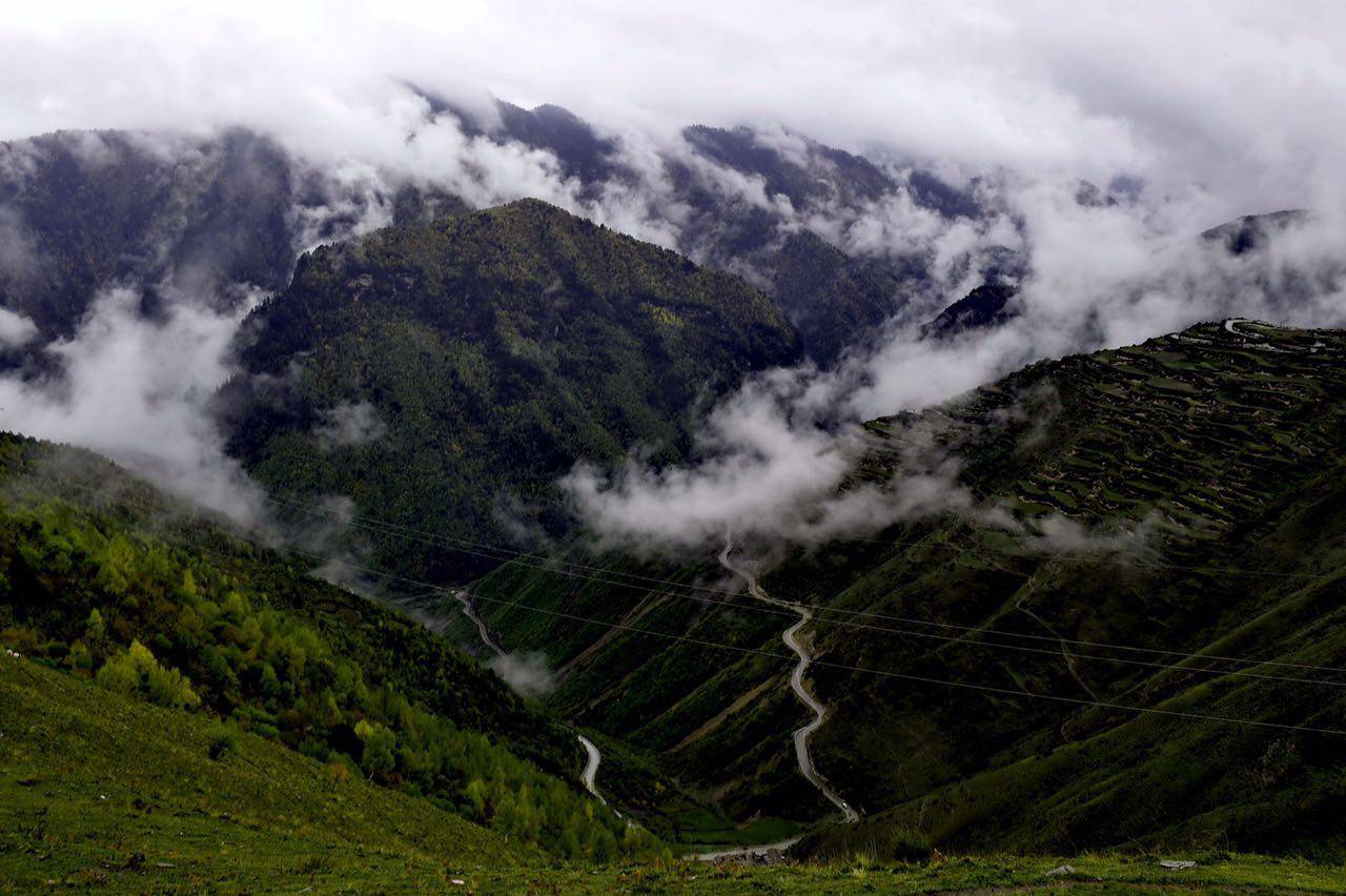 两天后,野马随着大部队直奔长征中最后一道天险“腊子口”而去,由于我们是从哈达铺出发的,需翻越海拔3050米的铁尺梁大山。这里地属甘肃藏南自治州,沿途风光十分秀丽,天气比较冷,某些山顶已经积起雪来,盘山而下,又会看见些许红叶夹杂在一片片绿意之中,以前都不知道,有一种美真的叫“层林尽染”。