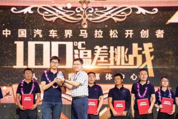 博越之夜上,人民日报新媒体中心颁发“中国汽车界马拉松开创者-吉利博越100度温差挑战”奖杯,表彰此次活动吉利博越所展现出的中国品牌产品的自信,展示了中国制造的实力,更是开创了中国汽车界品质验证马拉松先河。