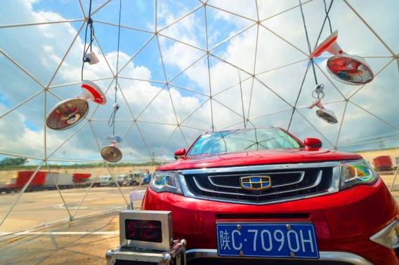 6月10日9时,吉利博越70°C高温暴晒挑战在海南热带汽车试验场启动,一辆行驶了100°C温差挑战全程的博越被放置在特制的篷房内进行8小时的高温暴晒,在热带炙热的阳光暴晒及多个专业升温设备辅助下,3个小时后车内温度最高冲上91.2°C,完成超出事先预设的70°C目标。