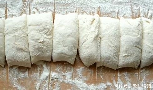 然后将它放到板上给他揉搓,进行排气,这样经过再次发作出来的会更加的柔软细腻,成品吃起来的口感也会更加的疏松。直到把他揉回发酵前大小就可以了,要尽量的揉久一些,这样才能弄的更加干净。揉的差不多了以后,把它搓成长条,用刀将它切成多个大小相同的小块,我一共切了八块,你也可以根据你的配料的多少进行切块。