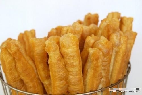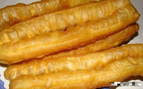 3、炸制。锅中倒油,多一些,油温180——200度,可以用一小块面团放入锅中测一下,如果面团不能飘起来说明油温低,如果迅速飘起说明油温太高。如果能够飘起来但不会马上变黄,说明油温合适。两手抻长下入油锅,快速拨动油条,等油条蓬起来再炸至两面金黄就好了。注意事项:下锅时两手要撑一下,尽量把油条拉长一点,下锅后要不停的的左右翻动油条,让其在热油里翻滚,才能快速膨化变大,这是最关键的一步。
