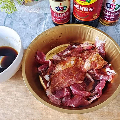 6、碗里放入肉片,加入调料汁抓匀,腌制半小时左右。