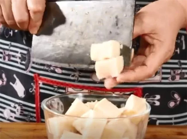 5.晾凉以后倒扣在案板上,用刀切成小块装碗里。