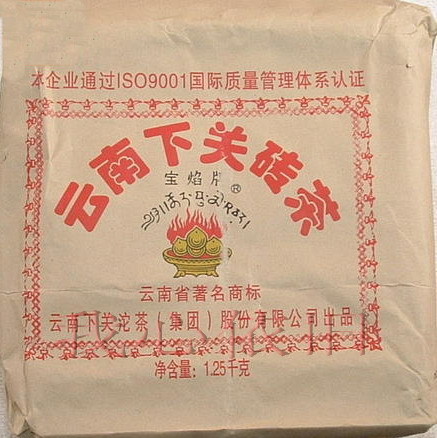 下关茶厂生产普洱茶,地理环境极为优越,位于云南最大的紧压茶加工中心和茶叶集散地——大理市。这里风景秀丽,气候宜人,苍山洱海优良的生态环境,大理地区悠久精湛的制茶技艺,为下关沱茶的优良品质提供了得天独厚的条件。1994年改制为“云南下关茶厂沱茶股份有限公司”。2004年通过国企改制成为股权多元化的股份制企业“云南下关沱茶(集团)股份有限公司”。现为农业产业化国家级龙头企业和国家扶贫龙头企业,国家边销茶定点生产企业和原料储备企业。南下关沱茶(集团)股份有限公司还是国家民委、国家经贸委等七部委指定的边销茶定点生产企业,“宝焰”牌下关砖茶被评为“中国茶叶名牌”、“云南省名牌产品”、“云南省消费最喜爱商品” 和“云南省著名商标”。60年的老品牌,又是这么实惠的价格,无论是收藏,品饮,还是送礼,都是好的选择.