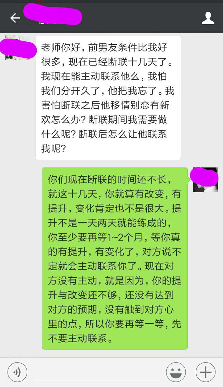很多人还是挽回的几大步骤和阶段掌握的不够,不知道各个步骤的配套话术技巧,忽略了二次吸引的重点。今天给大家分享一个挽回断联男友的案例。