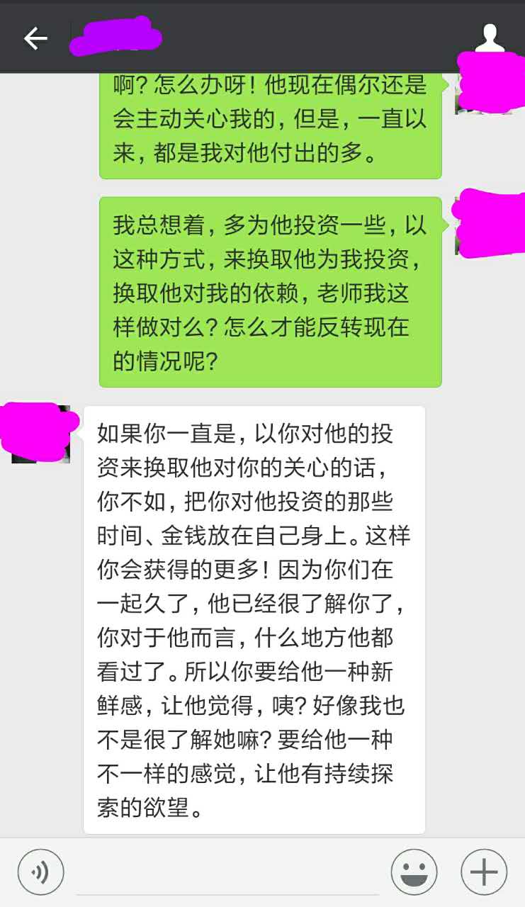 所以你要给他一种新鲜感,给他一种不一样的感觉,让他有持续探索的欲望。看这位小伙伴的来问。