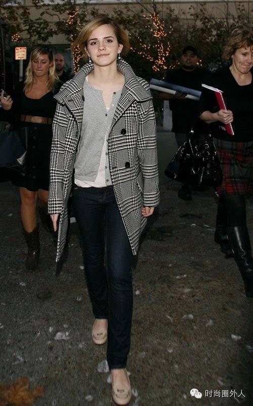 包括毛衣内搭的白色领子与白色袜子的呼应,恰到好处,这个时候如果只将手包换成白色都是多余。