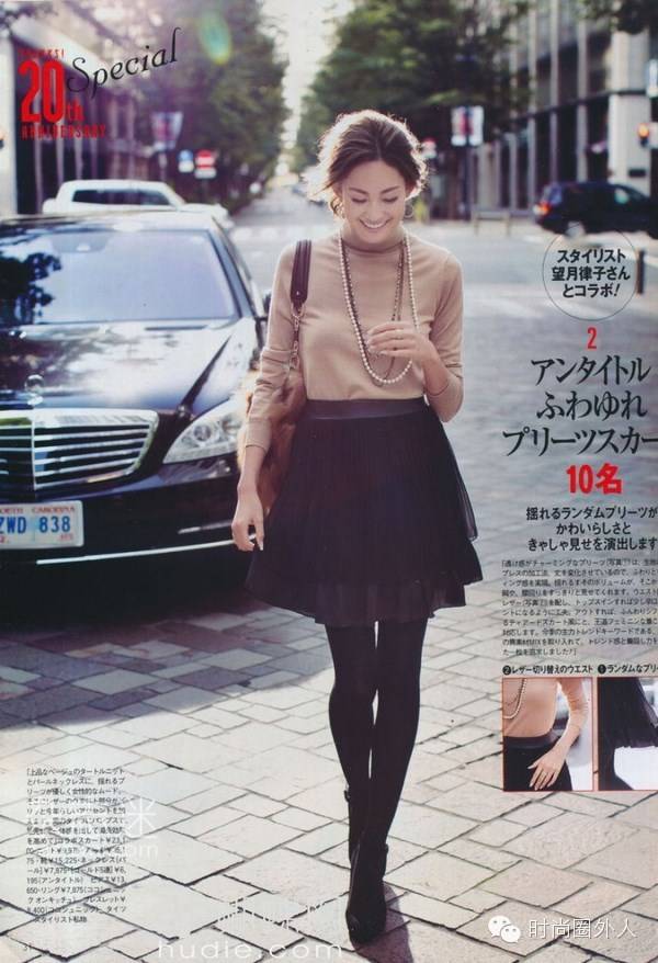 也可以驼色羊绒衫 黑色半裙: