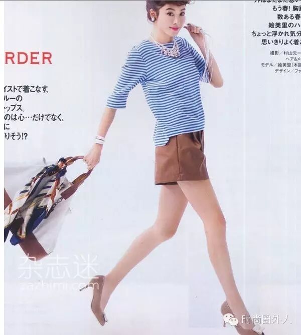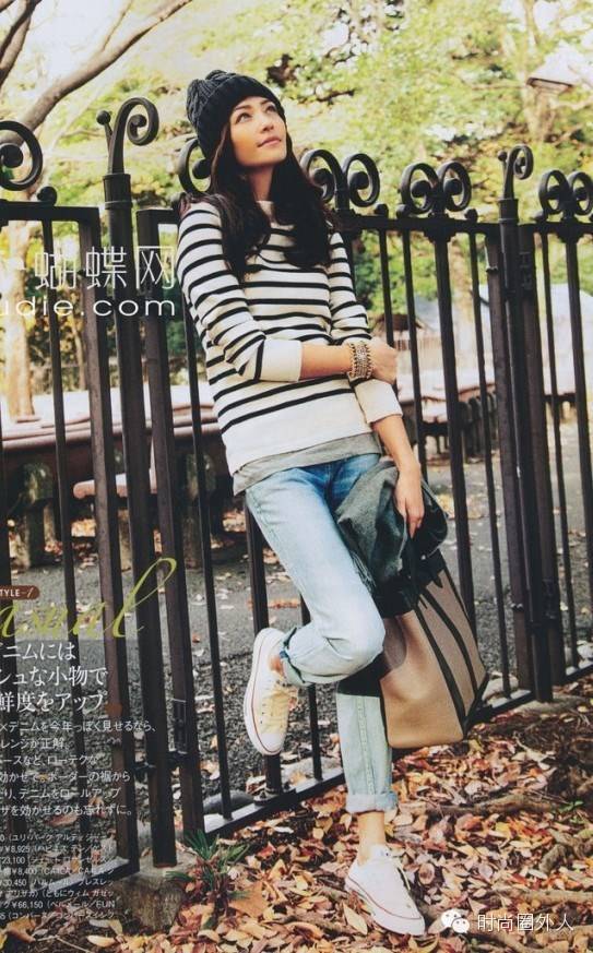 霓虹国的妹纸真的对条纹衫情有独钟,随便找一堆日本服装杂志的图,里面绝对会有条纹衫。
