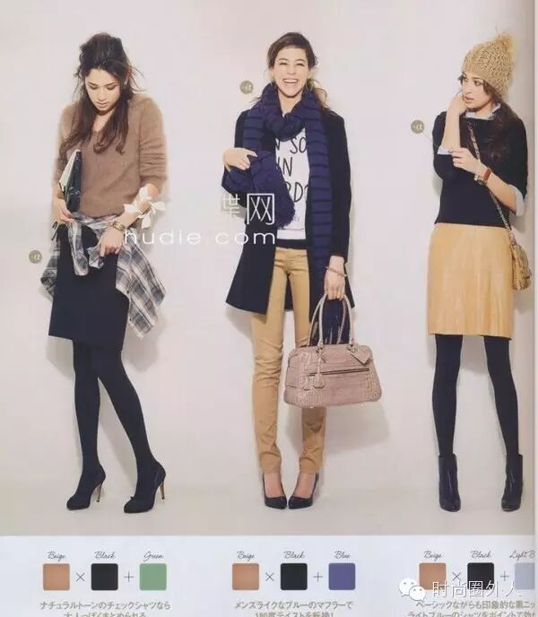 日系通勤风嘛,就颜色而言,黑、白、灰、蓝、驼色这五种颜色出镜率最高,也就是传说中的基础色。把握好了基础色,差不多就掌握了日系OL穿衣的精髓。