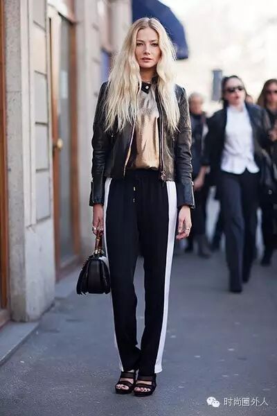 Tips:不需要把所有运动元素穿在身上,有一件时尚感的运动裤就足够了,简洁又明了的穿衣态度,符合运动风舒适的宗旨。
