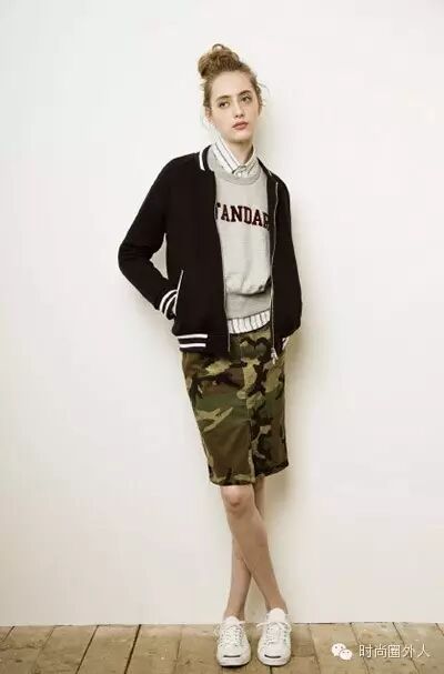 Tips:不想太过女人味可以选择迷彩图案的铅笔裙,牛仔质地也是不错的选择哦~~