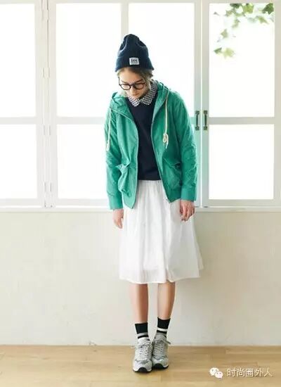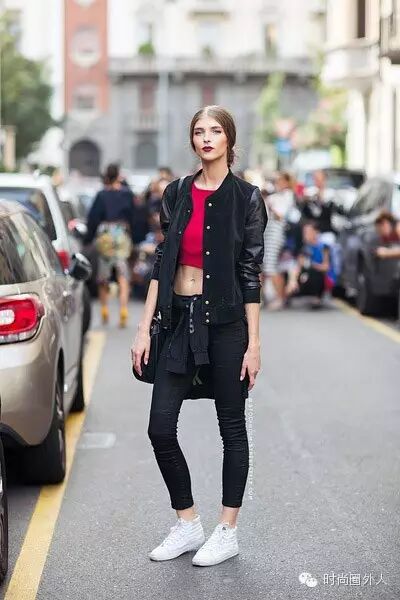 我有一条娃娃连衣裙,这样可爱的单品也能打造出运动风么?来看看这样简单的搭配吧,外面穿上黑色皮衣或者牛仔外套,配上一双运动款的鞋子,简单又可爱,绝对是最减龄的搭配~~