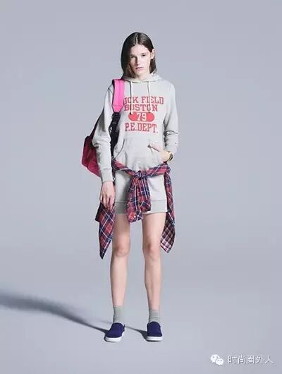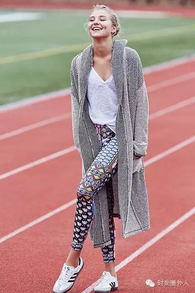 Tips:腿型好的女孩可以选择长款的卫衣,当连衣裙穿,配上运动鞋,当然还可以搭配长裤或者短裤营造出时尚的运动风格。