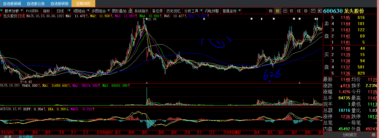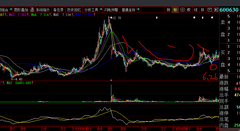 面对这张图,我就像发现股市宝藏秘密图一样,一直指导我到如今。随之又用两年时间,研究了大量数据,终于找出三套对付不同状况电脑技术指标与参数(何时是大资金建仓尾声?拉升的级别?洗盘的力度终结点在何处?时间运行多久?图形对应的未来大致高度是多少?怎样可以卖在相对最高点?撞大运压中爆庄股后短期最高极限的卖出客观指标是什么?参数是多少(规避人性弱点)?)。看看上图那两只脚,像不像一只碗的平面图的左右两只脚?所以我也经常把这种图形叫做“碗型、蝶形”,那个6.26元处就是最佳潜入点,我们再把6.26元左右两侧局部图形研究后会发现,又是一个“小型心形”,同时我们会发现,多么经典的一个“头肩底右肩突破”图形啊(不要问我很多问题,你又不是我儿子,我说这么多已经对得起粉丝了)。