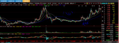 下图就是后几日暴涨行情。涨幅高度与我的技术方法基本一致。好了有人会问:为什么它只有这几日的连续拉升而没有像其他牛股那样,调整后再起连续暴涨行情呢?你要是能这样问,说明孺子可教。下图期初“丫”形左侧太小,时间又短,脚趾头也能猜出来主力筹码不多,属于短庄股行为的炒作方式。所以我就说呀:图形越大涨幅越高,反之就越少。应该可计的量度涨幅不就清楚了?把这个图形贴出来就是想表达图形的大小与涨幅量度的关系以及庄家介入深浅。让你们今后遇到同类问题不要再抱幻想。