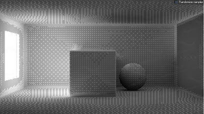 一旦计算场景中重要的采样点(含有GI颜色资讯)计算出来了,那些缺乏GI采样点的区域也开始进行内插计算出来.而在以BF计算的那个例子里面,在算图的时候,进行计算固定数量的二级光线,以半球的方向发射.在前一篇的教学有提到.