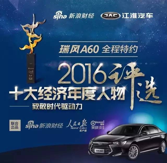 年初,瑞风A60全程特约新浪财经“2016十大经济年度人物评选”。活动从创新性、颠覆性、前瞻性、成长性、持续性五大维度,挖掘时代先锋,这正与瑞风A60的调性完美融合,也巩固了A60在消费者心中的商务形象。
