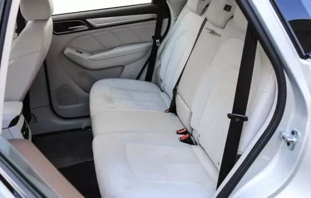 而在实际乘坐时候,荣威ERX5表现尚可。一个身高体重正常的人,在前后排都可以轻松舒服的坐下,当然如果和腾势的奢侈空间相比,那就略显不足了。