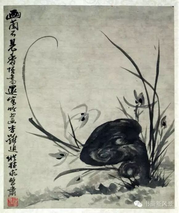 石涛固然是一位具有“天马行空”之才的人,然其画兰的成就并非易得。石涛在一幅墨兰册页中题道: “十四画兰五十六,至今与兰争鱼目;始信名高笔未高,悔不当初多食肉。”这诗的意思是:十四岁画兰已画到五十六岁了,还未能画好。虽然名高而笔未高,未能予兰传神,不过鱼目混珠而己。早知这样,不如当初多食肉以养生,何必要这番素心。这首诗貌似诙谐,实则表露了石涛画兰的甘苦。