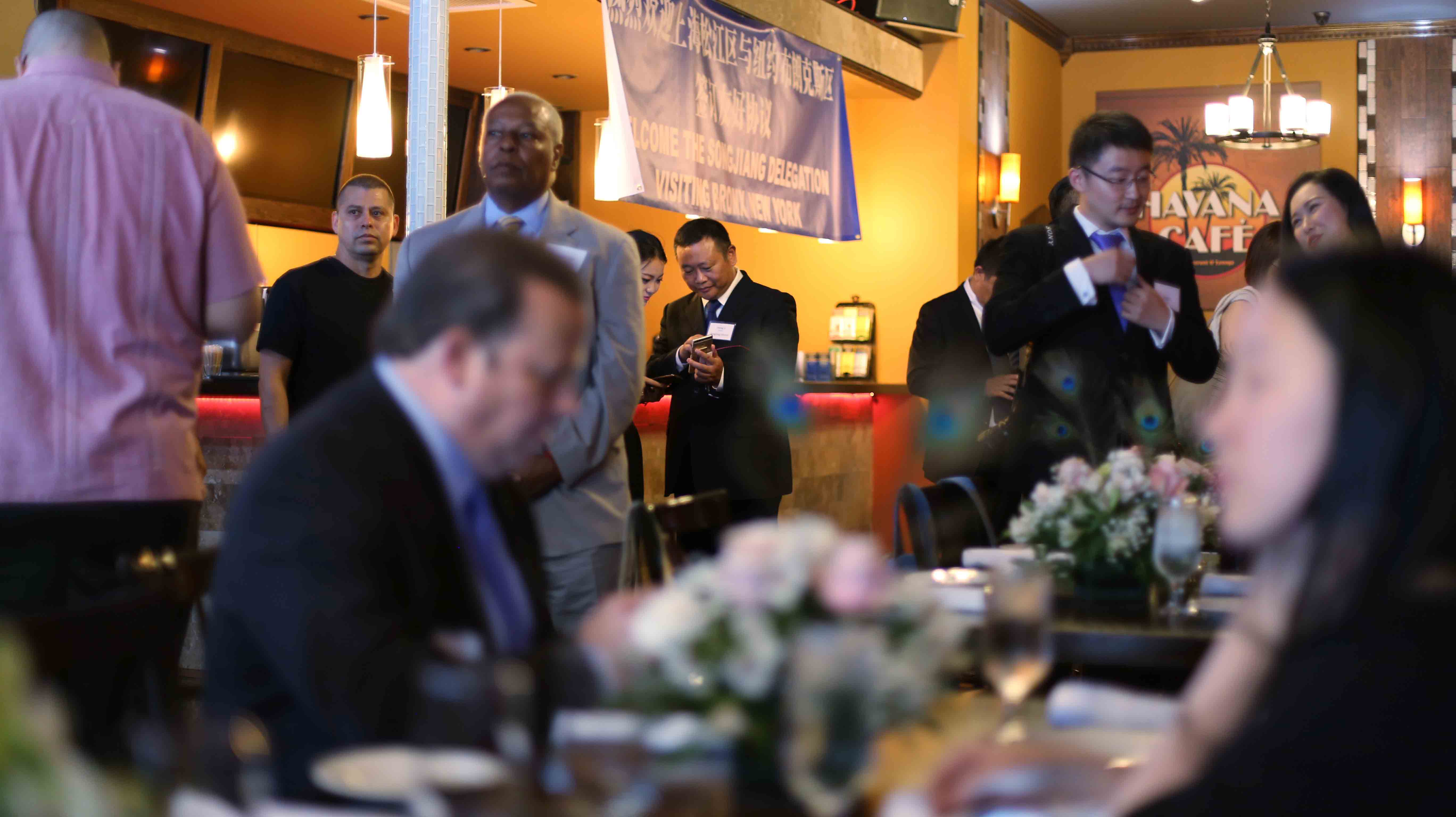 下午松江代表团在美方人士陪同下参观了布朗克斯的医疗学府和机构,并游览了著名的纽约植物园。晚上6时,双方抵达位于布朗克斯区的一个古巴餐厅,参加由纽约亚美商业中心承办的欢迎晚宴。亚美中心在这次会面中,负责承办宴会并发挥了牵线搭桥的作用。亚美中心主席王章华先生全程陪同了松江区代表团。