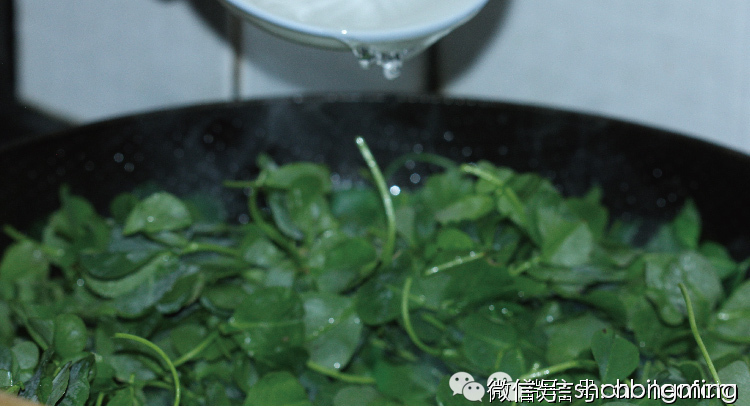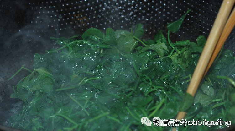 你看,满满一锅的草头现在只有半锅了,这个时候可以把酒撒进去了。