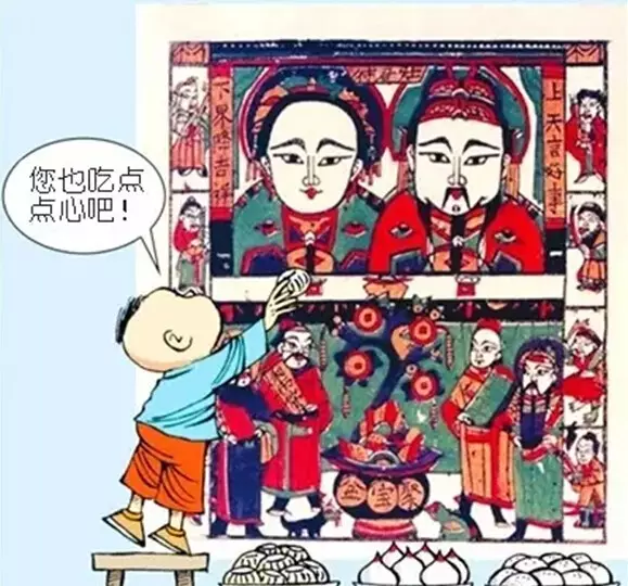 夜幕降临,家长在灶君前点上两支大红蜡烛及一炷清香,屋里灯火通明,香烟缭绕。供灶君享用的祭物逐一摆上,有饴糖浆和面粉合成的、又甜又粘的烂斩糖,还有面饼、青菜、豆腐、茨菰等。全家男女老少逐一跪倒叩头。稍后,再把灶君神像从灶龛里捧出,拿起烂斩糖涂抹在灶君的嘴巴上,让其甜嘴,好叫他在玉皇大帝前多为本家美言,保佑人寿年丰,最后将神像与纸錠一起火化,以示上天。祭完灶,家家户户就会吃廿四夜饭,食用的是赤豆饭、卷银包。
