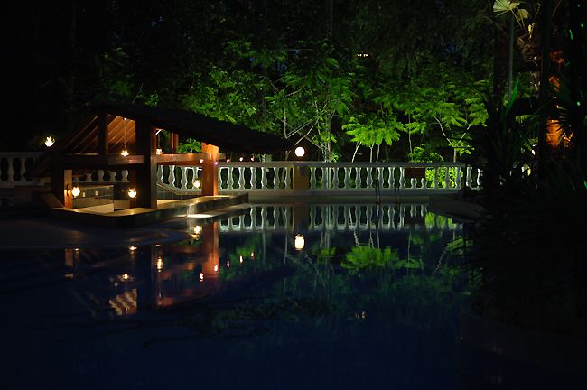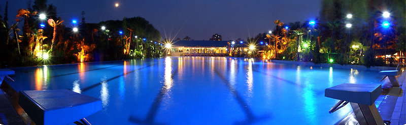 除了主题房自带汤池,酒店还配备了独有的露天汤泉,四个露天汤泉设计各有特点,都是由酒店独立设计并建造而成的,除了汤泉设计新颖独特,周围的景观也独具匠心,采用芭蕉、棕榈配合灯光效果,营造出移步异景的氛围。这里还拥有北京户外唯一的标准泳池,泳池绿茵掩映,环境十分幽静,每年只有7—9月三个月的黄金开放期,是不可多得的夏日度假地。环境绝佳的露天汤泉、设计独特的汤池客房,这里有美景相伴,美食相陪,用一个周末的时间足以享受一个夏天!