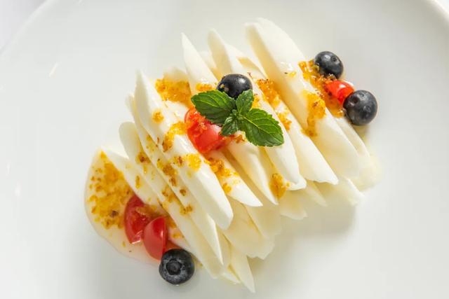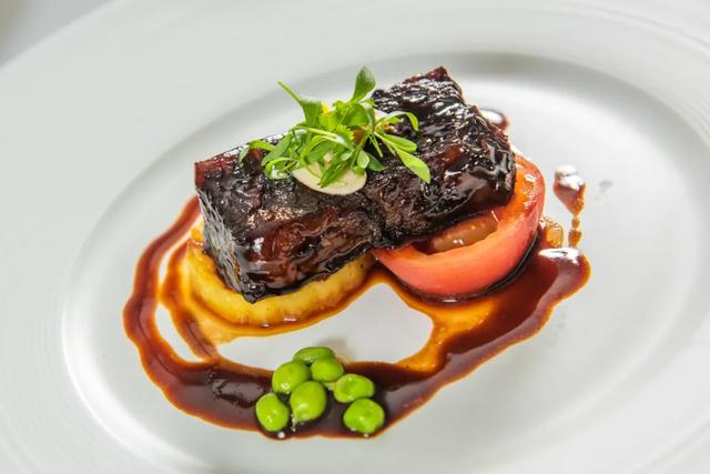“慢煮”果然出彩,运用慢炖方法烹饪食物,水分流失仅在5%-8%之间,小牛扒口感尤为鲜嫩,肉质酥烂的口感,还能保证营养不流失。烹煮的时长和牛肉的大小都经过大厨长时间的摸索,慢炖的牛扒块多一股焦香,也让这道菜层次更加丰富。