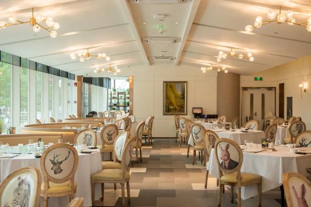 新开放的一层是世博源公馆景观、视野开阔的宴会大厅,公馆运用了坡度式屋顶结构,这里座位布局自由灵活,可以同时服务4桌宴会客人,适合不同规模的宴会聚餐同时,又能提供食客独处的宁静和窗外世博源美景。