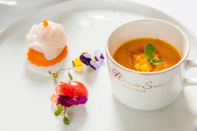 点心双拼甜品艺术是考验主厨的审美的,如果能在品尝佳肴的同时欣赏到艺术品,不失为一种享受。看看这莹润Q弹的小西米~还有大块够甜的芒果果肉,熬煮出甘美清透的好滋味。搭配广式茶点中的经典水晶虾饺,皮白如雪,薄如纸,半透明,内馅大虾隐约可见,吃起来爽滑清鲜,美味诱人。