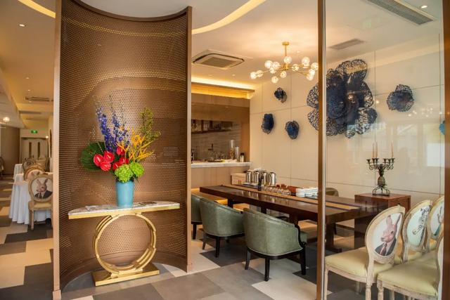 公馆宴会大厅还将茶文化贯穿其中,食客酒足饭饱后,还能定定心心坐下来喝杯好茶。一楼的前厅一侧,便有独立空间专设了一个茶台,不时有茶艺师端坐其中,用行云流水的动作沏茶泡茶,看得人非常赏心悦目。