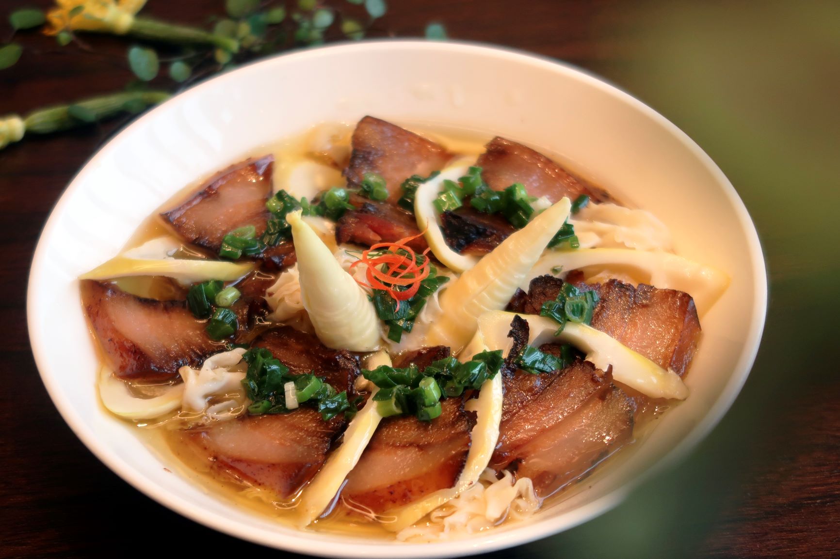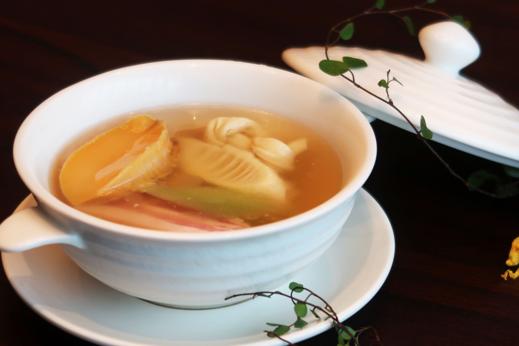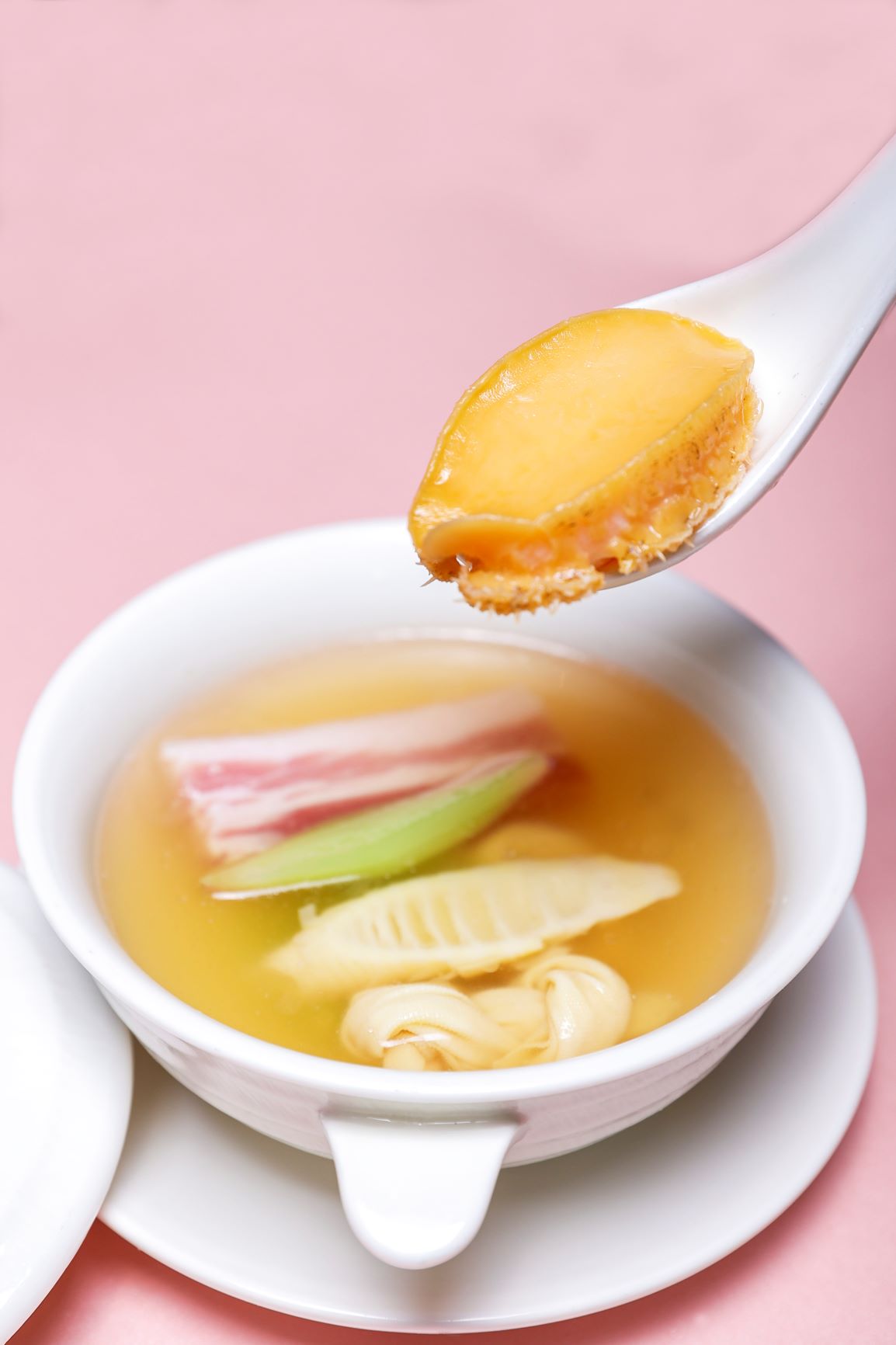 鲜香的咸肉,青绿的莴笋,甜脆的春笋,加上重头戏——新鲜弹牙的原只鲍鱼,红绿黄白都在奶汤之上,腌笃鲜笃出来的,是春的气息,家的味道,如同轻风拂过脸颊的温柔。