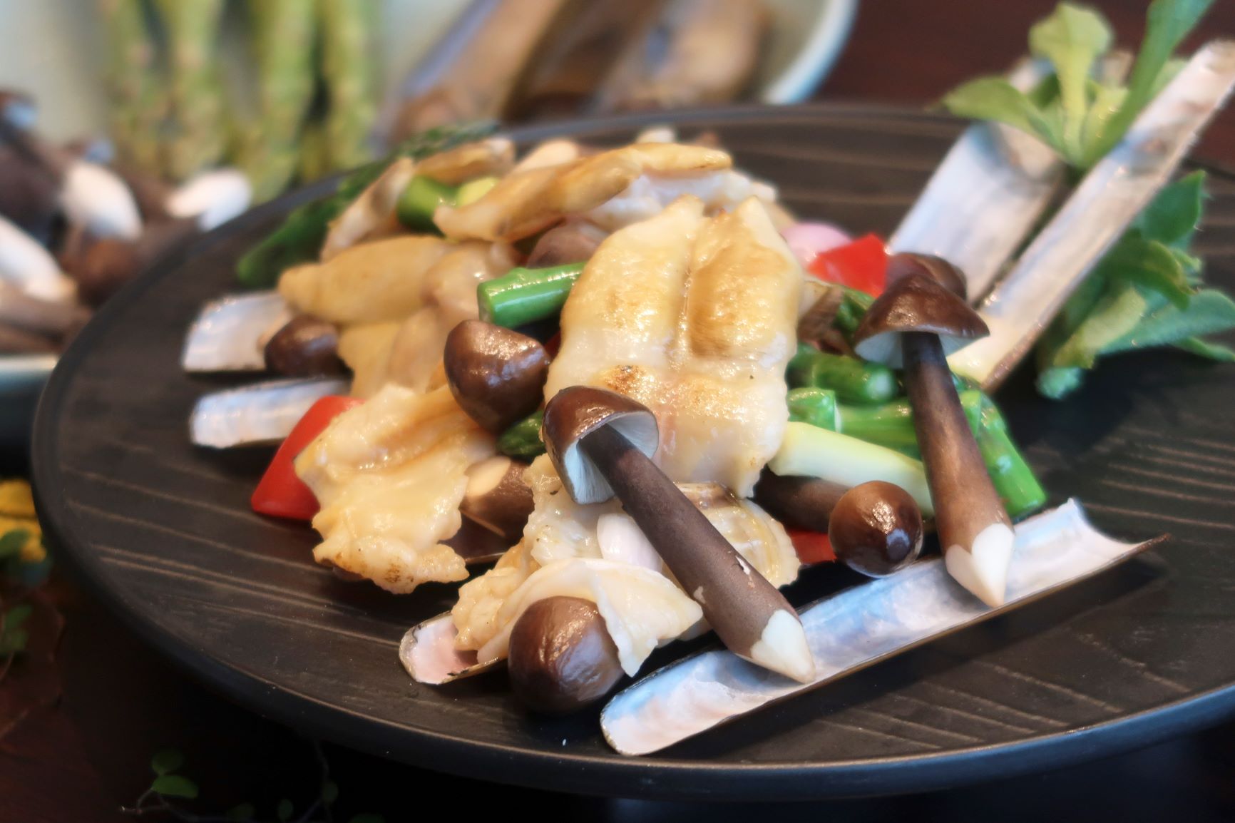 「黑鸡枞绿芦笋爆炒竹蛏皇」