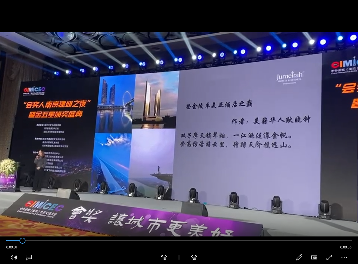 当天颁奖晚宴,南京卓美亚酒店受邀代表建邺区各酒店通过美籍华人耿晓钟笔下的文字,向所有来宾展示了南京卓美亚酒店和南京眼旁保利大剧院的建筑设计之美、与自然景观相得益彰。
