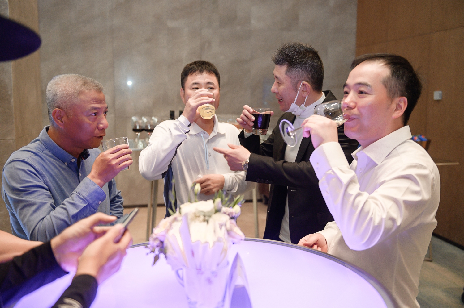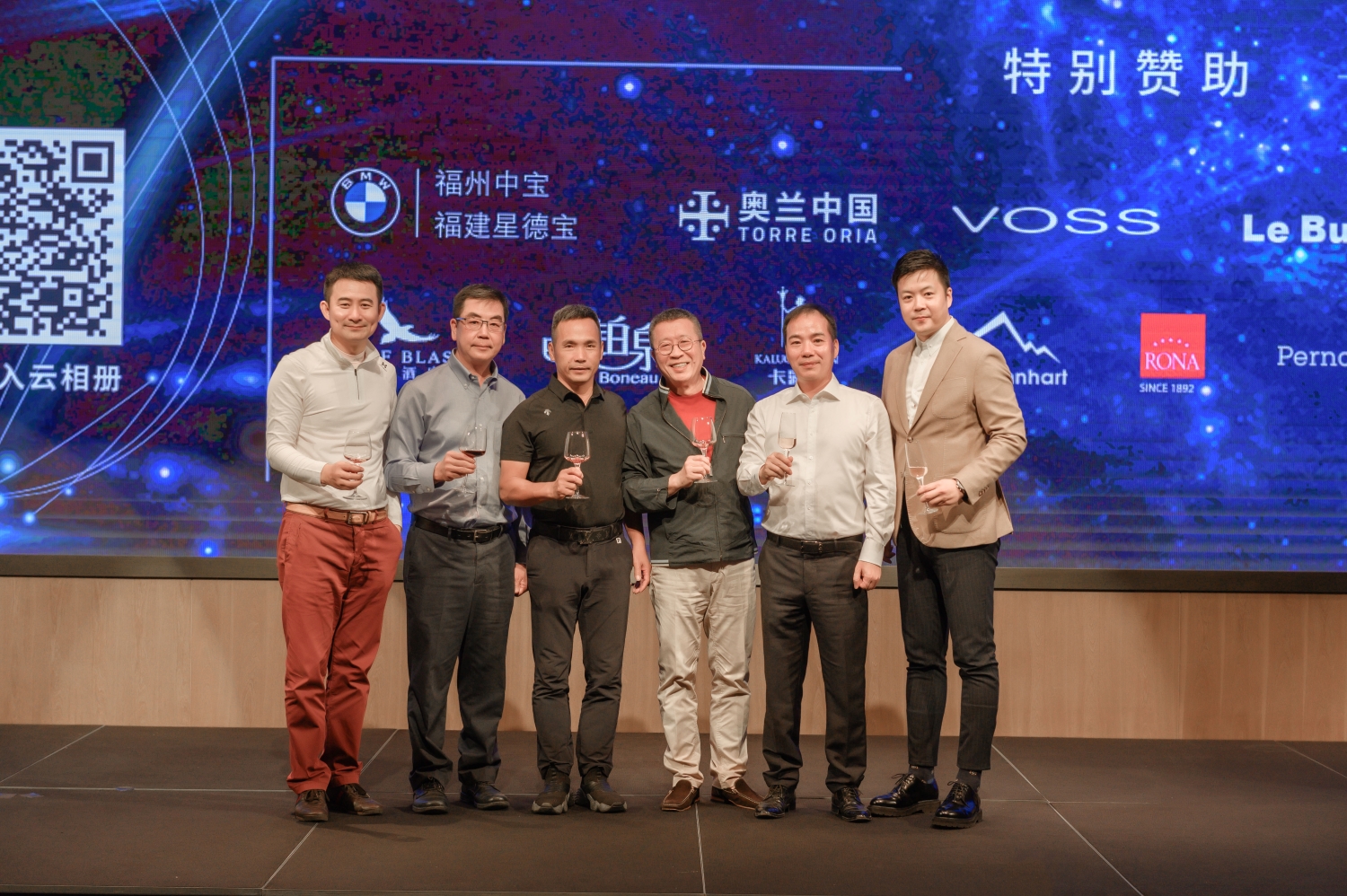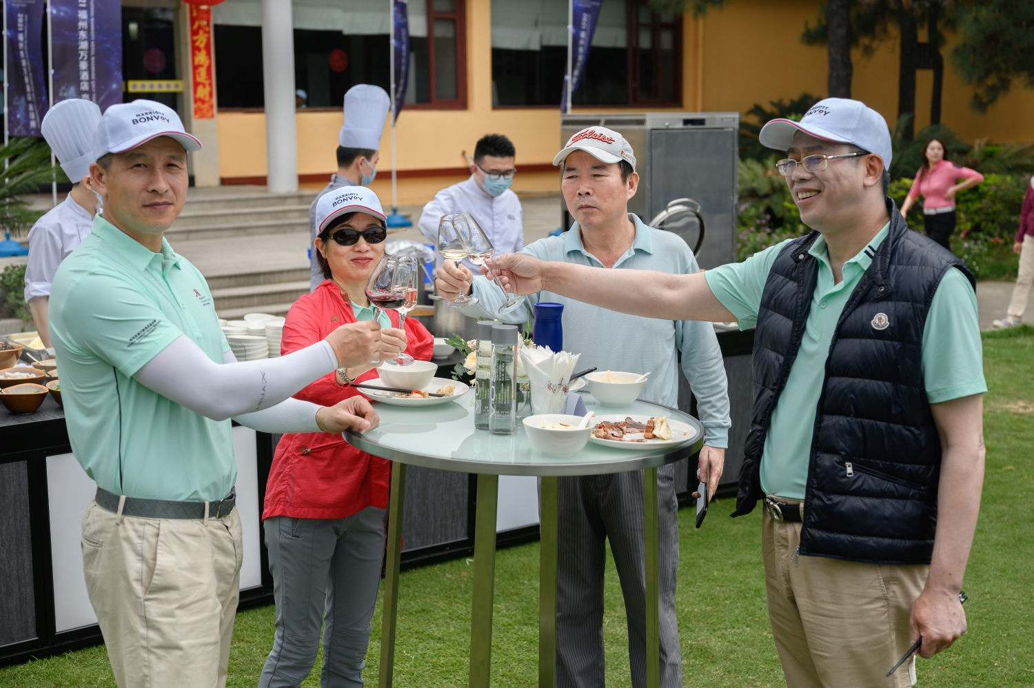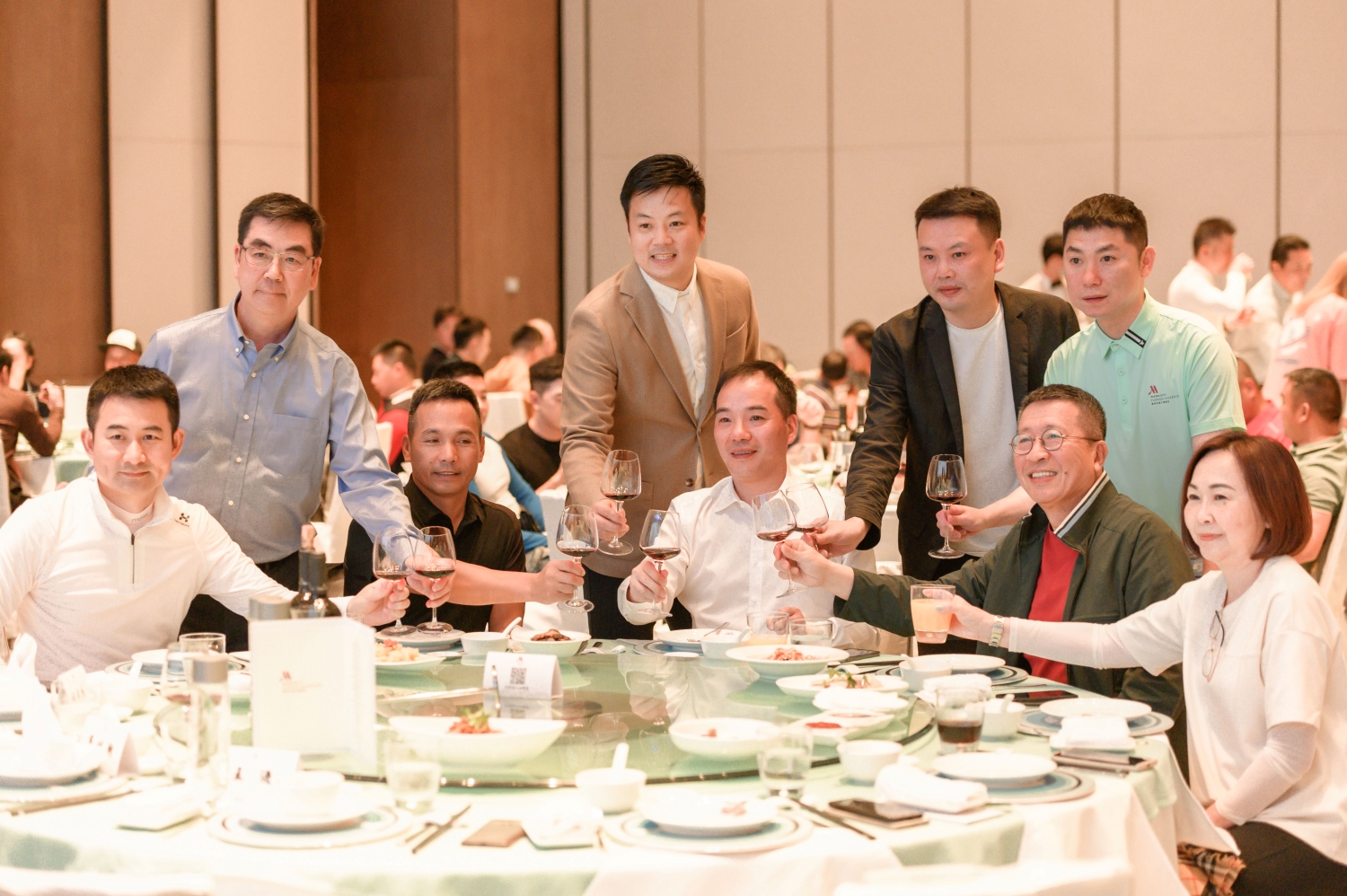 随着颁奖晚宴的开启,万豪国际东南区副总裁游新志先生、福建新东湖投资有限公司总裁陈国和先生、福建省高尔夫球协会副主席吴伟煌先生,福州东湖万豪酒店总经理高佳奇先生、本次高球赛的发起者- 福州东湖文旅集团常务副总经理及福州东湖万豪酒店业主代表王颍先生、以及本次高球赛事总顾问 -港榕高尔夫球会张孝勤先生一起上台祝酒,与参赛球员共同庆祝赛事的圆满举办。