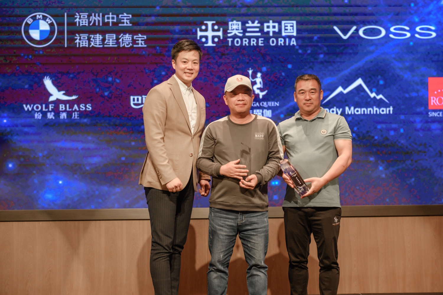 一段福利派送的抽奖环节过后,福建新东湖投资有限公司总裁陈国和先生作为颁奖嘉宾分别为获得“福州东湖万豪酒店高球赛总杆亚军何昌文先生及总杆季军傅洁人先生分别进行了颁奖。