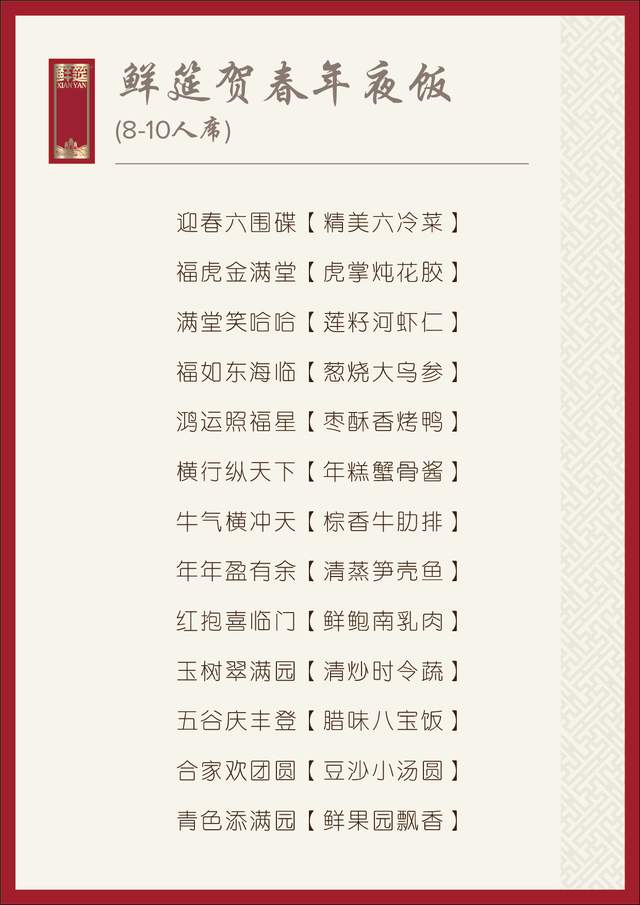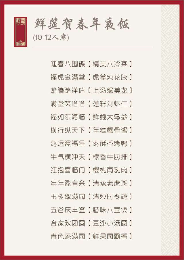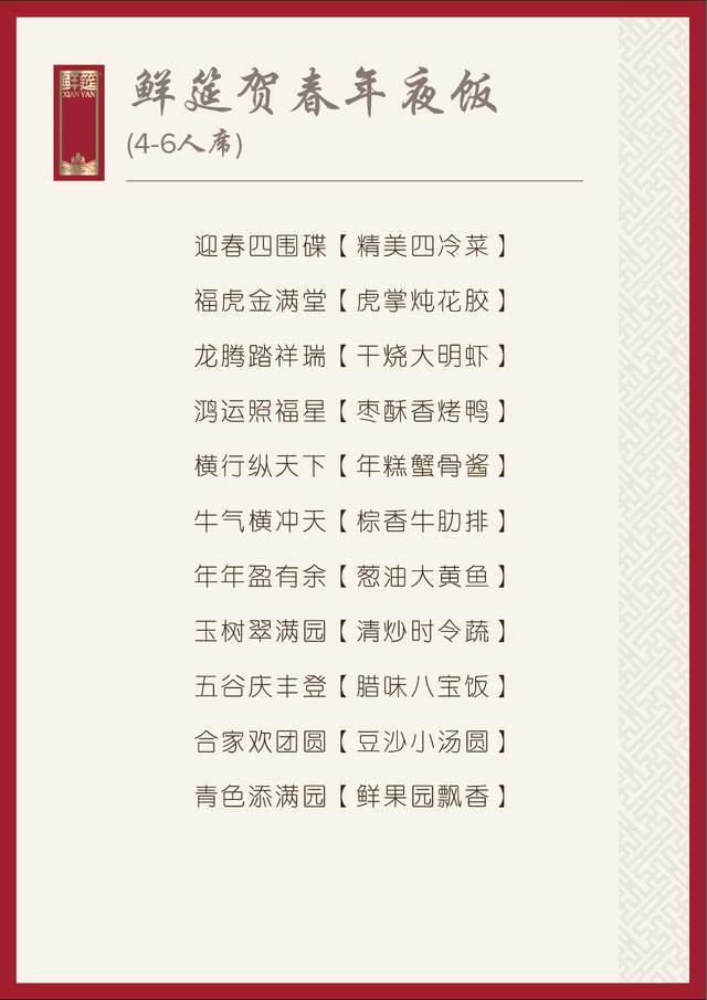 与您的挚爱亲朋齐聚鲜筵餐厅,置身于中式传统文化的格调氛围中,分享丰饶的新春美馔、共享幸福的团圆时刻!