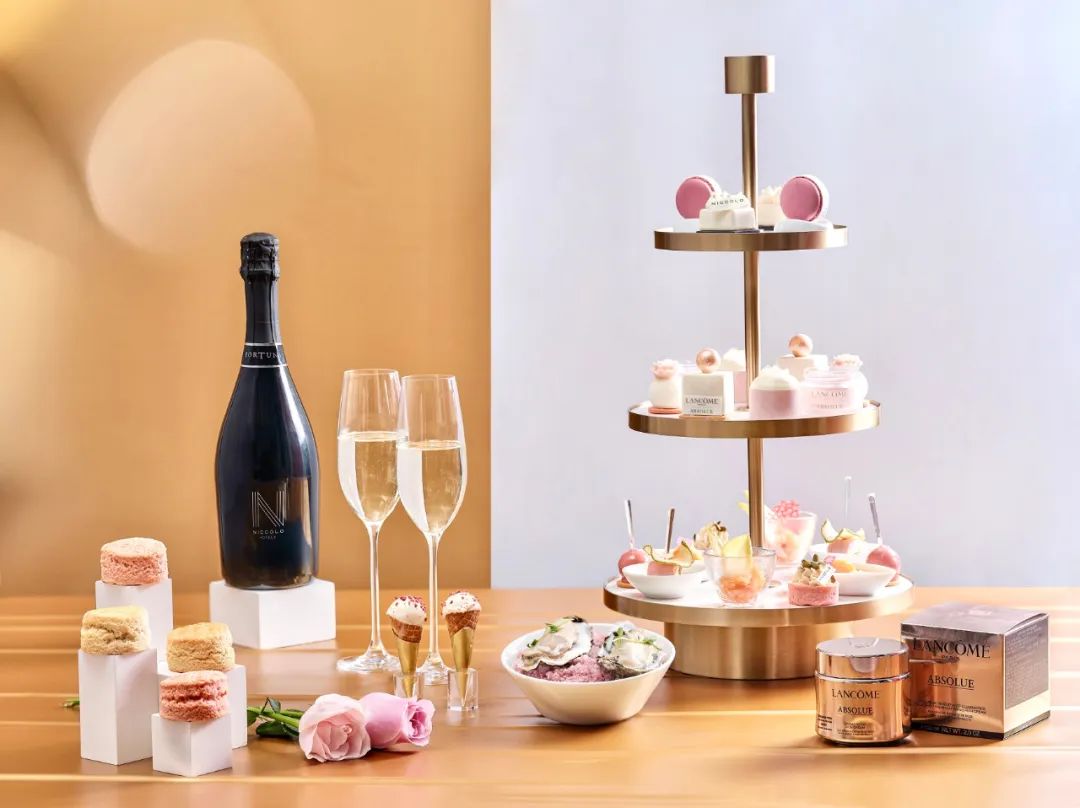 周年庆期间,苏州尼依格罗酒店携手半世纪的护肤传奇-法国奢华护肤线Lancôme兰蔻菁纯系列,以“悦享五感 恒绽高光” 为主元素打造出兰蔻“菁纯玫瑰系列”联名下午茶。本期下午茶包含多款大厨独家定制款兰蔻&尼依格罗主题甜品,搭配精致法式咸点,更有小生蚝配精选鱼子酱及尼依格罗普罗赛克起泡酒。购买下午茶的宾客可通过微信扫码登记注册领取一套价值1000元的兰蔻“五感之旅”护肤礼盒套装。让宾客在体验云端天际下午茶的同时,又能将兰蔻护肤礼盒带回家,体验菁纯玫瑰护肤为客人带来的独一无二的肌肤奢宠之礼,收获每一个高光时刻。下午茶将于4月26日起在酒店微信周年庆页面开启预售,购买成功的宾客可在5月10日后预约享用。