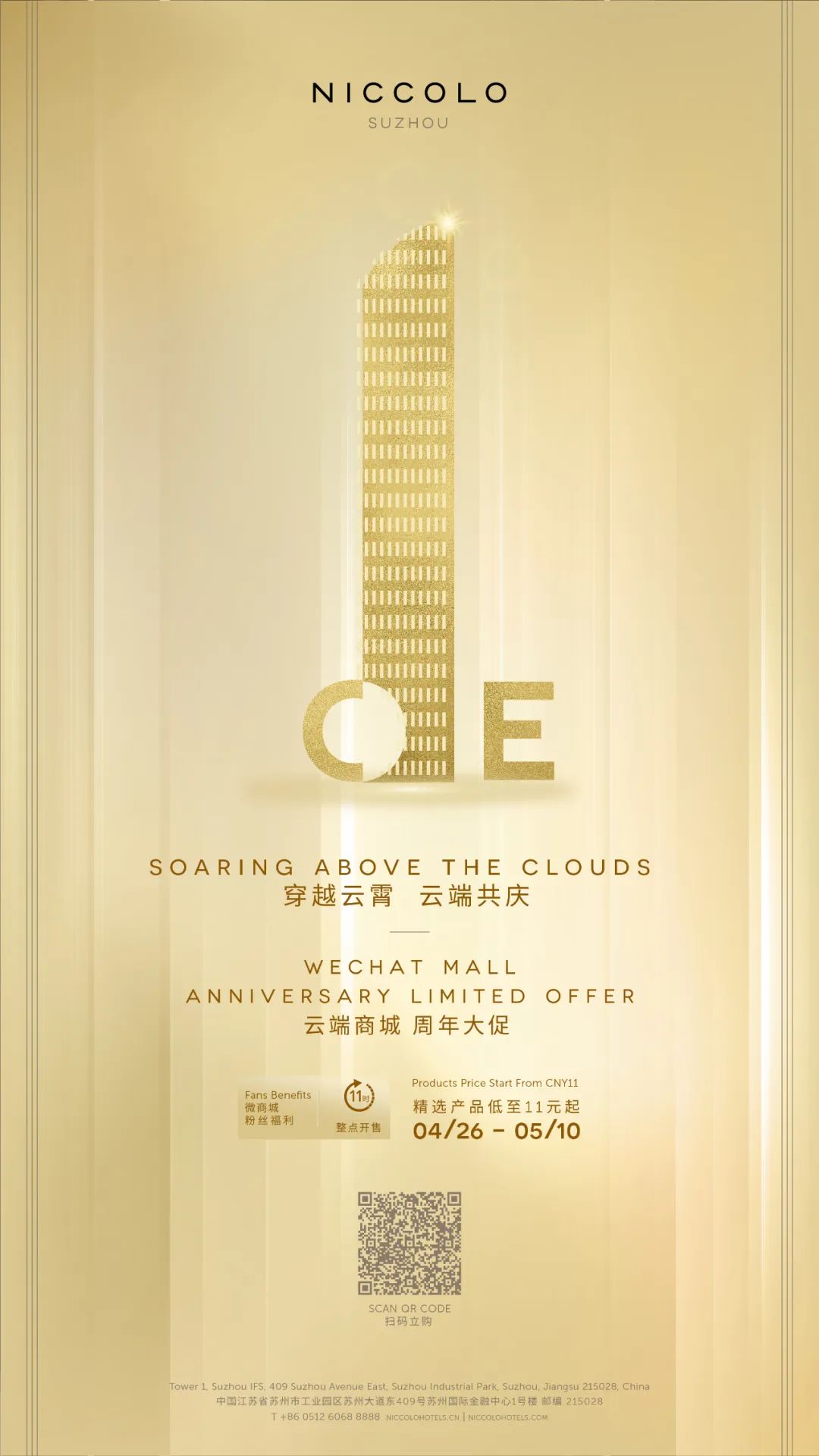 中国,苏州,2022年4月26日–近日,位于苏州地标建筑- 国际金融中心之巅(103-117层)的苏州尼依格罗酒店于2022年4月1日迎来了酒店开业一周年生日。2022年4月,苏州尼依格罗酒店将通过社交媒体平台及网络渠道进行为期一个月的“穿越云霄 云端共庆”周年庆系列线上活动,与线上粉丝及客人进行互动与庆祝。宾客不仅可以通过“云祝福”为酒店送上周年庆祝福及分享尼依格罗故事,还可以通过“云互动”与酒店进行社交媒体转发互动。除了之外,酒店还推出了线上周年庆客房及餐饮产品微商城大促限时优惠活动,周年庆粉丝福利、生日月客人福利以及云视频互动。让宾客充了解及感受苏州尼依格罗的云端魅力。