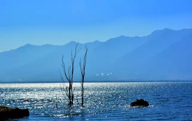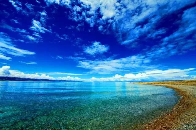 不同的角度看,有不一样的蓝色,湛蓝,深蓝、浅蓝、淡蓝,谁都无法预测它的变化。湖面上泛起的点点波纹,美得肆意,美得自信,美得辉煌灿烂,美得令人震撼!