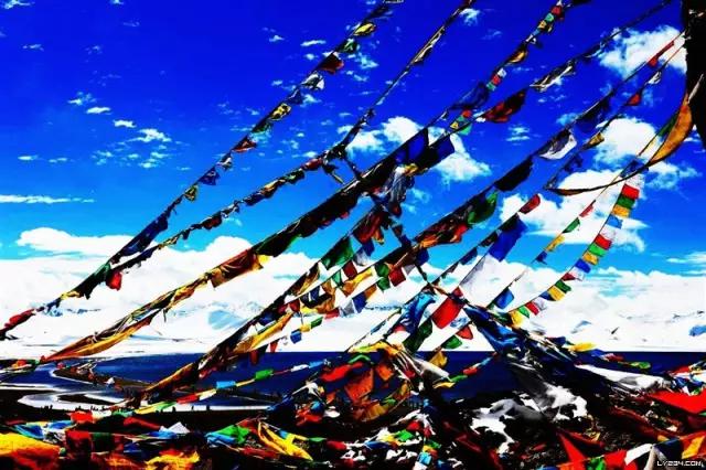 自驾于此,头顶着深邃透彻的的蓝天,南面白雪皑皑的念青唐古拉山时隐时现,宛若一个东藏西躲的害羞少女。迎风飘扬的五彩经幡,更添纳木错的律动美。