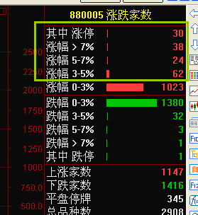 13:53:23 从涨跌加数上看,个股力度一直都走不出来,涨幅大于百分五的没几只,而且自然板也没几只,这种盘面还是偏弱势。