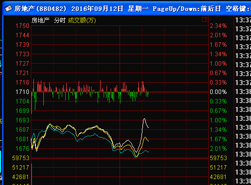 13:40:18 刚地产分时图小拉下,不过其他的板块分时图没怎么跟风,于是指数没弹出什么效果