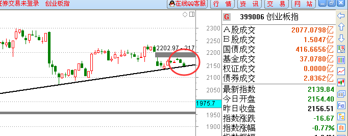 09:49:40 从创业板日线图上看,短期估计还是要再次考验下轨道支撑,短期盯着这个轨道就可以。不过,目前指数大周期还处于震荡蓄势的过程,出现单边下跌或者单边上涨概率比较小,所以大家不要跟着分时图去追涨杀跌就行,博弈的仓位尽量不去追高,如果行情比较鸡肋,博弈的仓位也可以考虑观望为主。