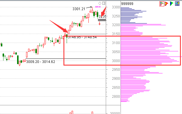 13:37如果上证指数短期不能回今天的跳空缺口的话,短期回踩的小目标就看到3150附件,这点位附近是11月10号向上跳空缺口,以及3150附近有比较密集的筹码交易区多多少少会有点支撑